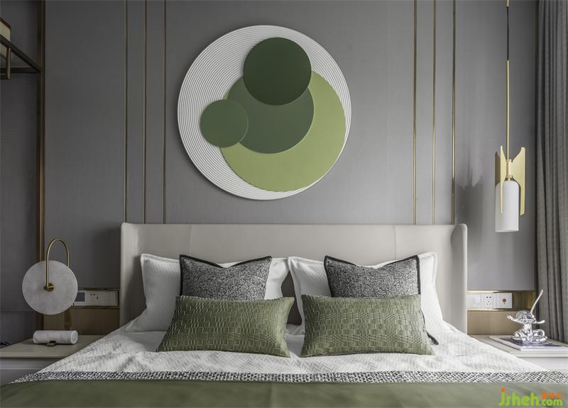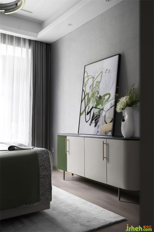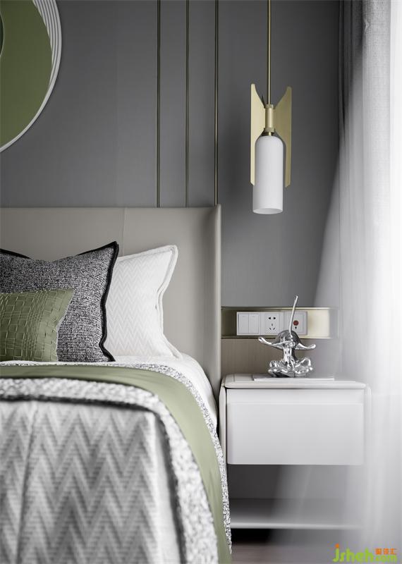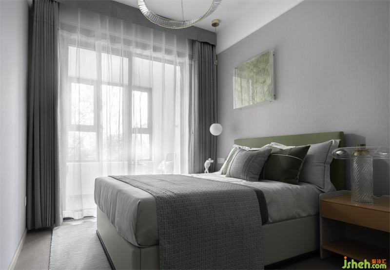 高級灰的睡眠空間,讓不同飽和度的綠色跳躍其中。