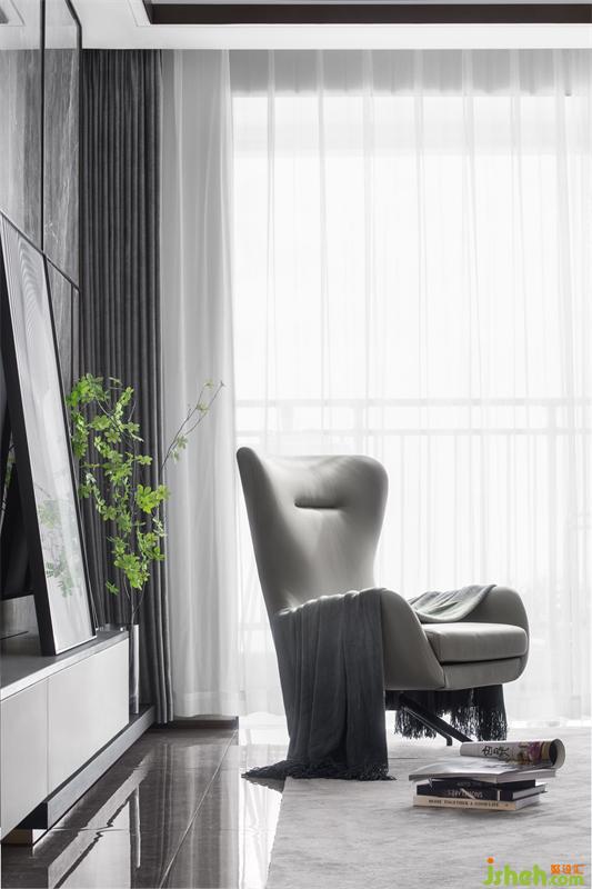 陽(yáng)光毫不吝嗇地照進(jìn)來(lái),球體金屬擺件的弧度、影影綽綽的綠植、樣板房設(shè)計(jì)舒適柔軟的座椅,構(gòu)成現(xiàn)代輕奢風(fēng)格的獨(dú)特美學(xué)秩序。