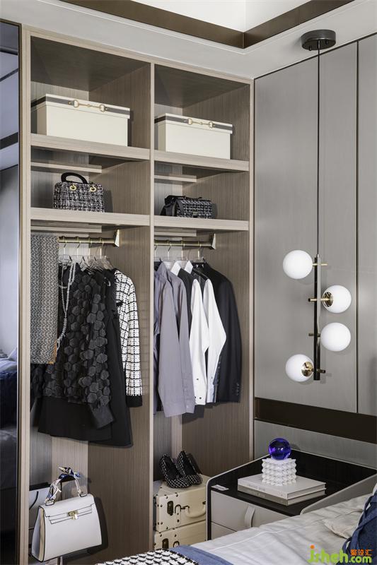一目了然的衣帽收納區(qū)域讓收納變得更簡(jiǎn)單,展現(xiàn)居住者的衣著品味,樣板房設(shè)計(jì)也是提升幸福感與精致感的手段。