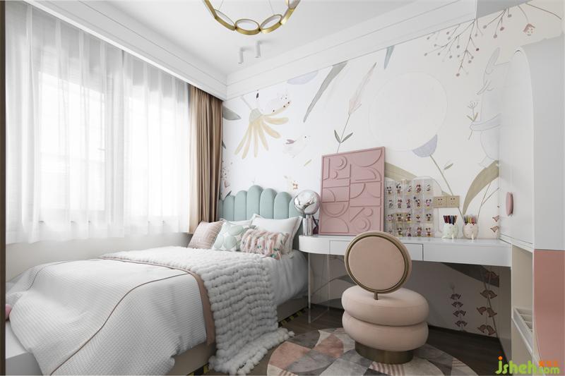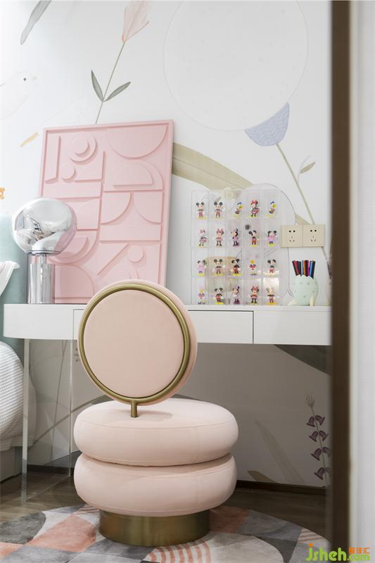 馬卡龍色系是女兒房的主調(diào)?;ú莶瀹孅c(diǎn)綴的墻面、浪漫粉色的幾何掛畫,都將天真爛漫的空間性格娓娓道來。