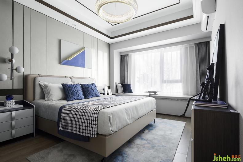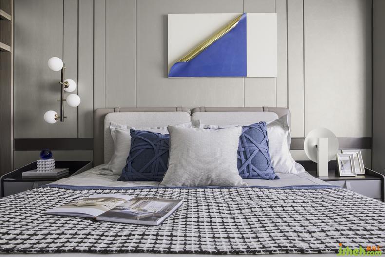 淺色系的主臥空間穿插不同層次藍(lán)色調(diào),營(yíng)造淡雅的氛圍。