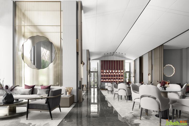 若說梯間的風(fēng)格是“自在飛花輕似夢”,那么休閑區(qū)則鋪陳了“無邊絲雨細(xì)如愁”的空靈境地。