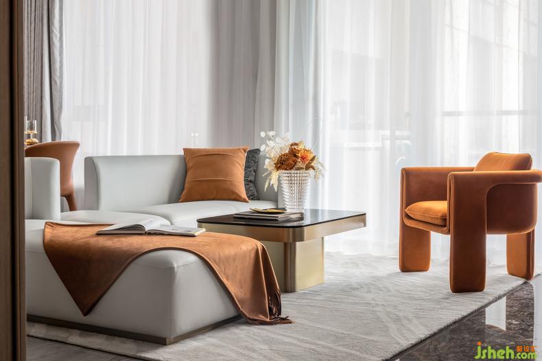 典雅簡潔的卡因斯棕配合光影與透明度,構(gòu)筑起105戶型的設(shè)計(jì)內(nèi)核。