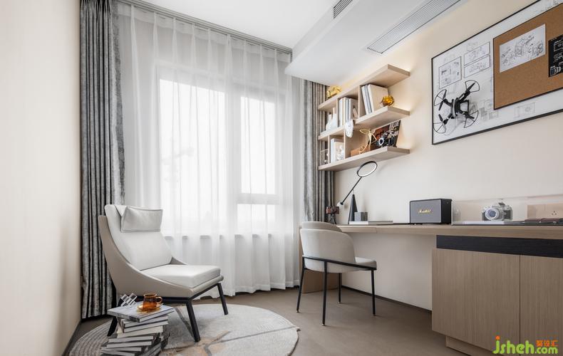 樣板房設(shè)計(jì)書房兼顧了辦公與收藏的功能,機(jī)械的線條美感、膠卷的顆粒質(zhì)感,都成為空間的個(gè)性化標(biāo)簽。