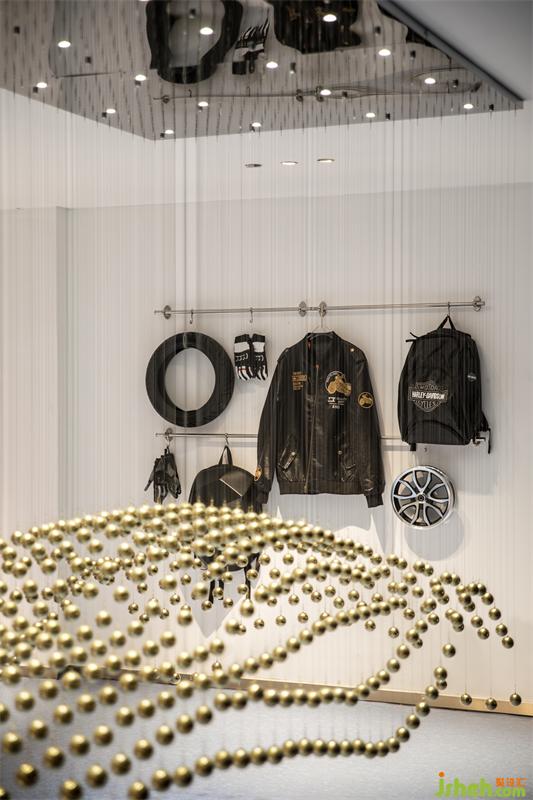 機車展示區(qū)延續(xù)空間主調(diào),遵循減少主義打造空間氛圍,運用空中垂下宛如散落米粒的裝飾設計,別墅裝飾自然而錯落的構圖,朦朧的氛圍感中,盡顯奢華趣致。