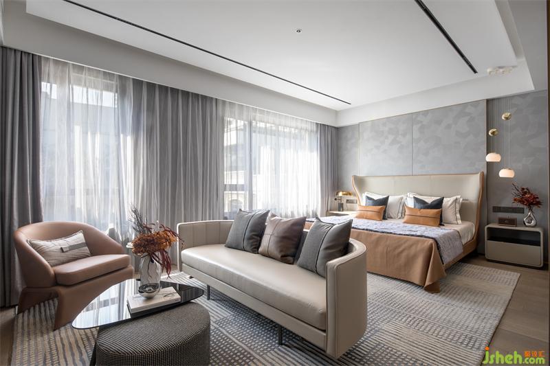 臥室,是家里最舒適的庇護所。主創(chuàng)設計團隊延續(xù)克制而低調(diào)的色彩,別墅裝飾構建一個可獨處思考的小天地。它不是展示廳,而是一個人個性、經(jīng)歷、品位的包容所在,在疲憊的日常生活中,找尋內(nèi)心力量,獲得片刻安靜。