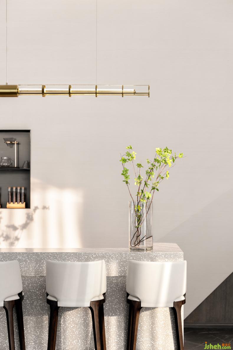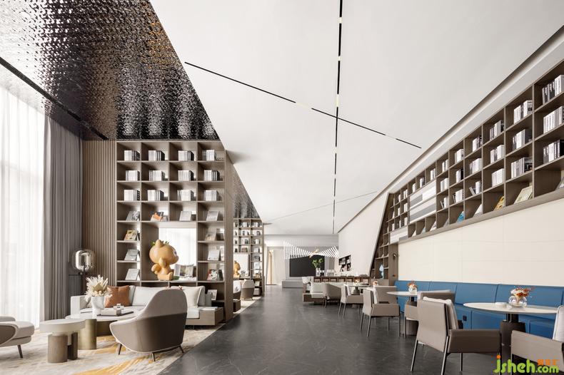 天花加以極具現(xiàn)代感的線條元素與靈動(dòng)的水波紋形態(tài)統(tǒng)籌空間語(yǔ)言,呈現(xiàn)別樣的藝術(shù)體驗(yàn),讓明凈開(kāi)闊的視覺(jué)效果搭建情感共鳴,訴說(shuō)城市生活的新風(fēng)尚。