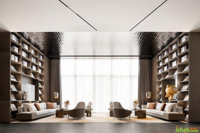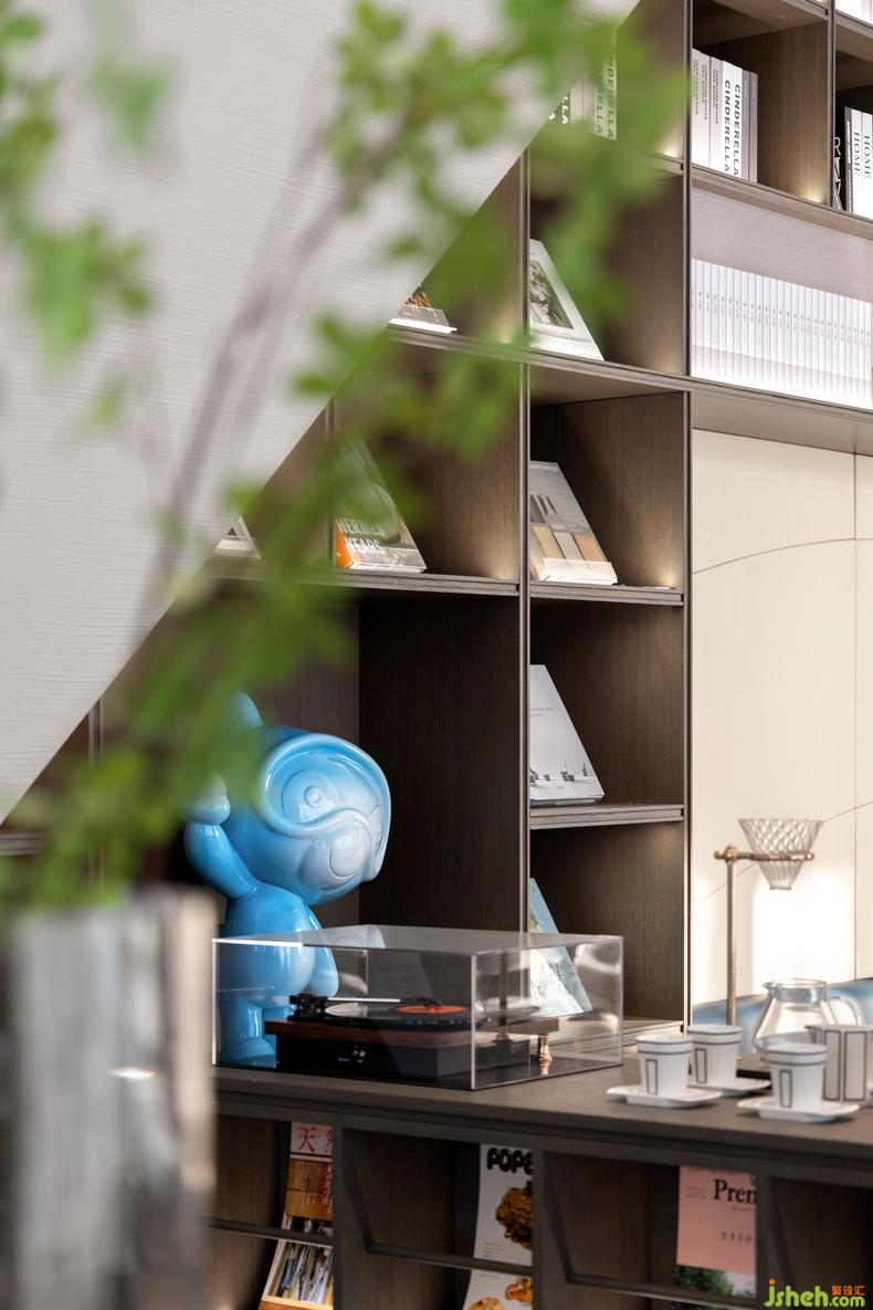 沿著動(dòng)線繼續(xù)前行,你會(huì)看見(jiàn)咖啡吧、書(shū)吧、文創(chuàng)區(qū)與洽談區(qū)靈活地結(jié)合在一起,南寧售樓處設(shè)計(jì)各種情境交融。沉浸于文藝空間,漫游藝術(shù)世界,體會(huì)放松自由、思想碰撞的魅力,或?qū)ひ唤欠喗?jīng)典,獲取精神力量。