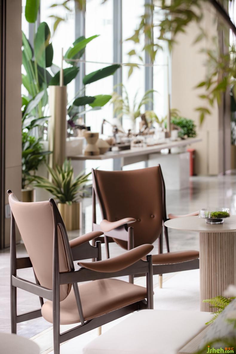 SUNS尚石設(shè)計(jì)干凈華貴的皮革與之相融,在綠意盎然的基調(diào)中注入摩登元素,更貼近現(xiàn)代藝術(shù)品味。