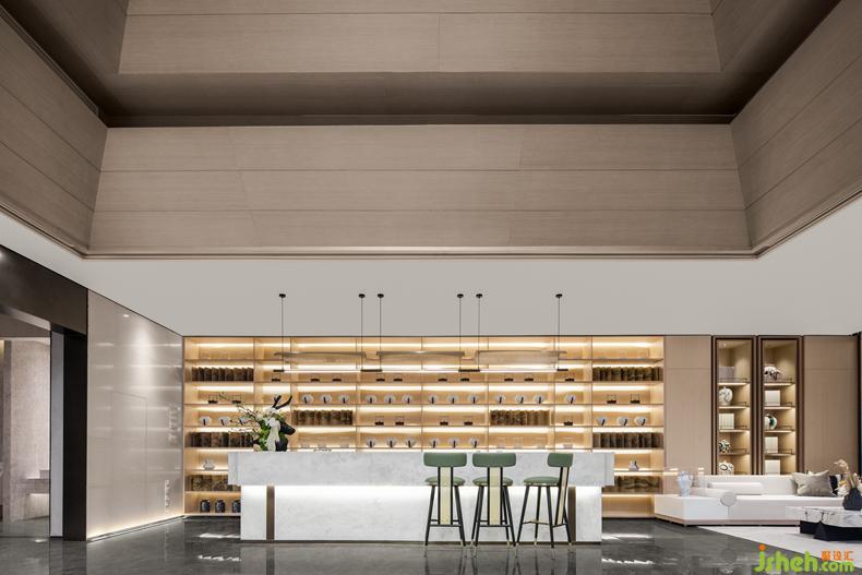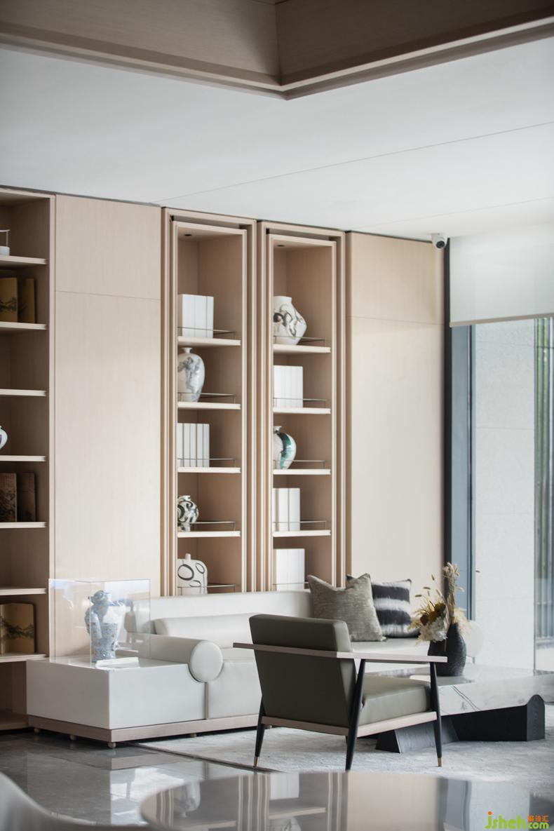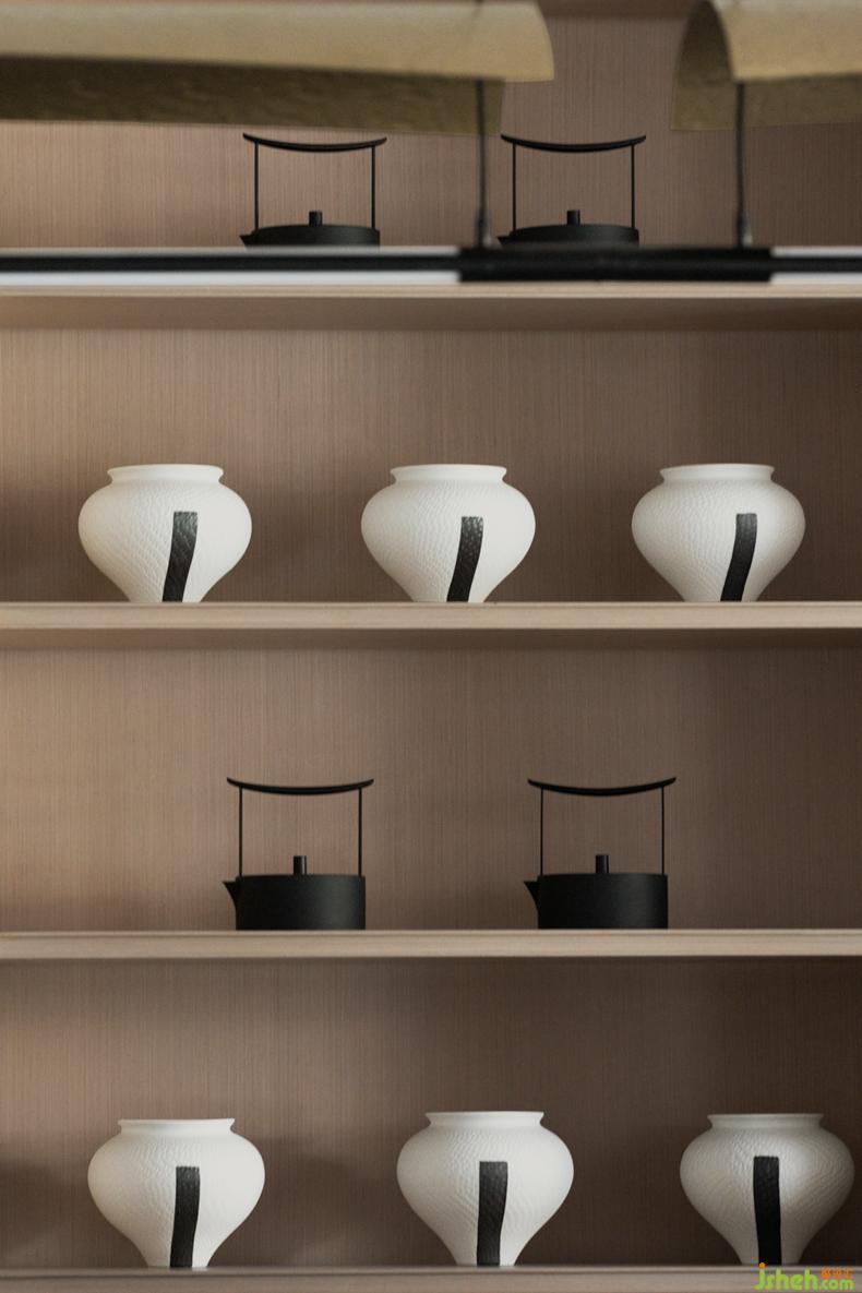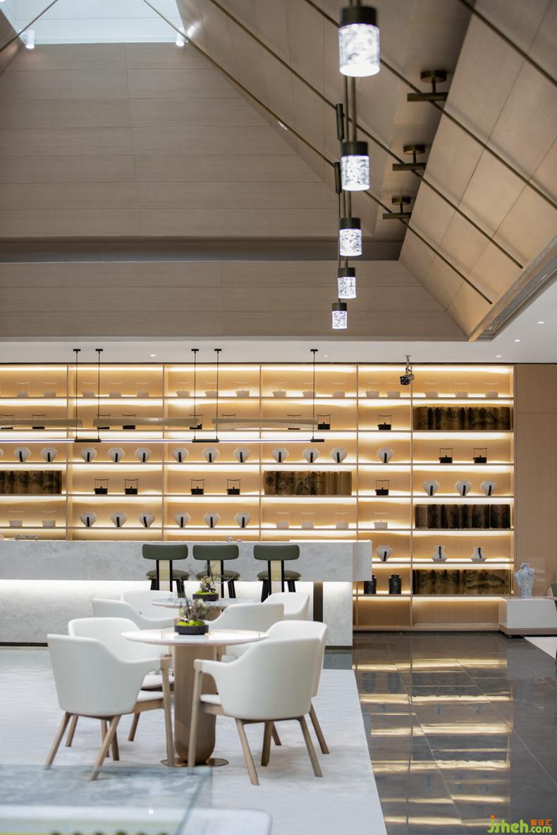 SUNS尚石設(shè)計(jì)在洽談區(qū)將這一風(fēng)格完整承傳,宋瓷的藝術(shù)介入不僅是對(duì)空間的點(diǎn)綴,售樓處設(shè)計(jì)更是體現(xiàn)宋式美學(xué)跟生活緊密結(jié)合,深植對(duì)生活器物的講究。無(wú)一不散發(fā)著平和淡然的氣息。