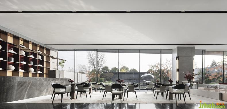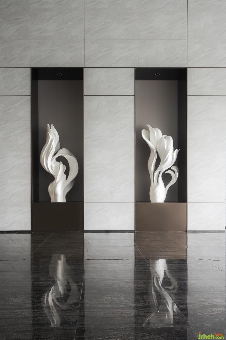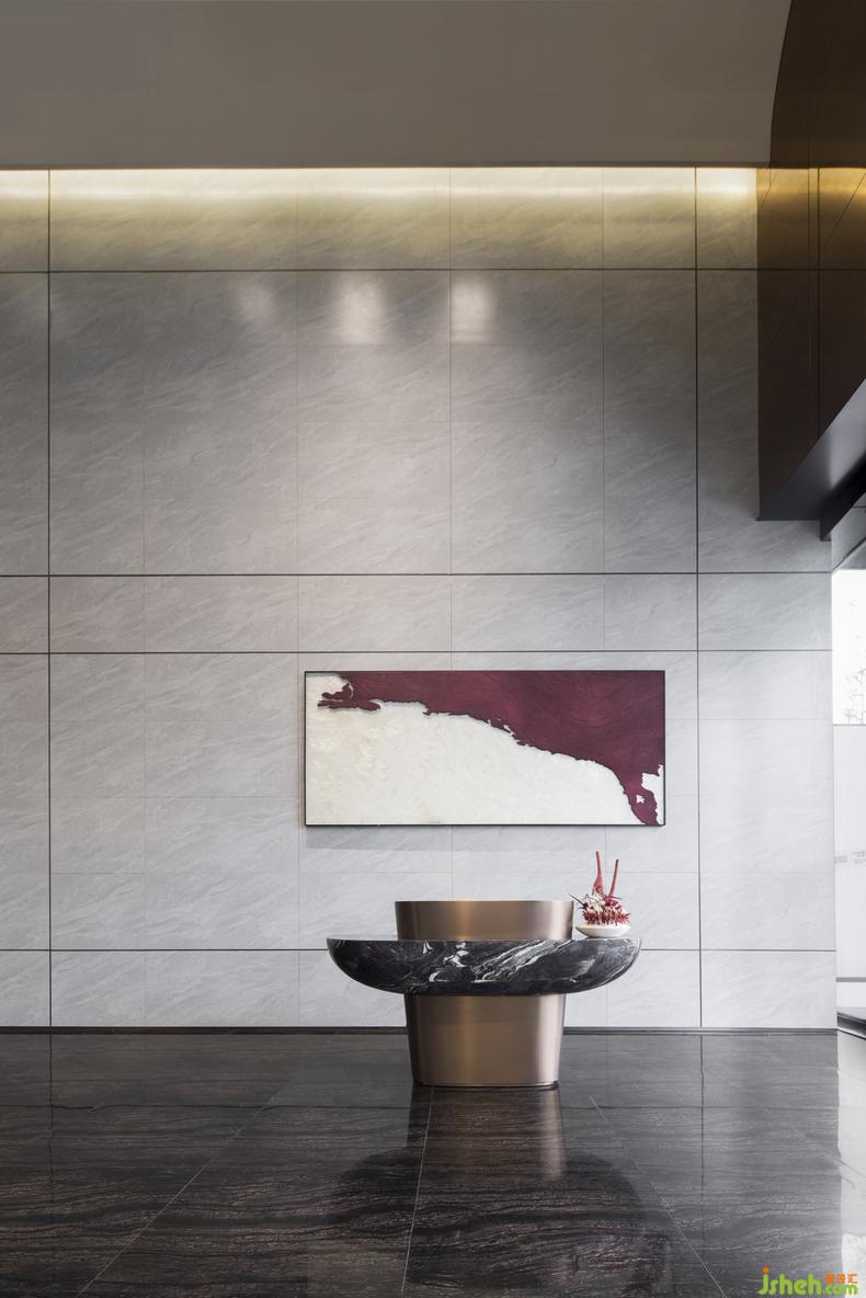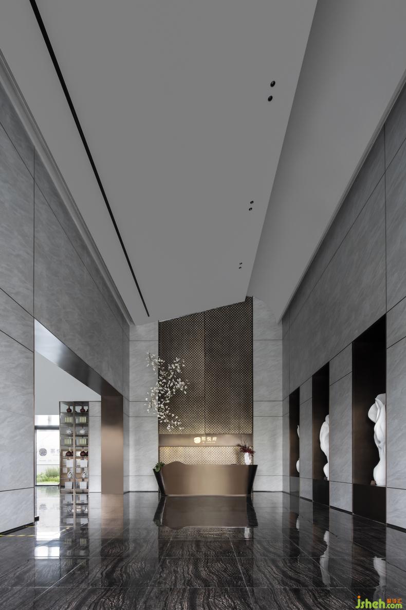接待門廳以灰白色調(diào)大理石搭建低調(diào)實(shí)用的空間基調(diào),輔以莊重大氣的金屬色點(diǎn)綴,構(gòu)筑渾自然而成的氣質(zhì),喚起全新場域力量。