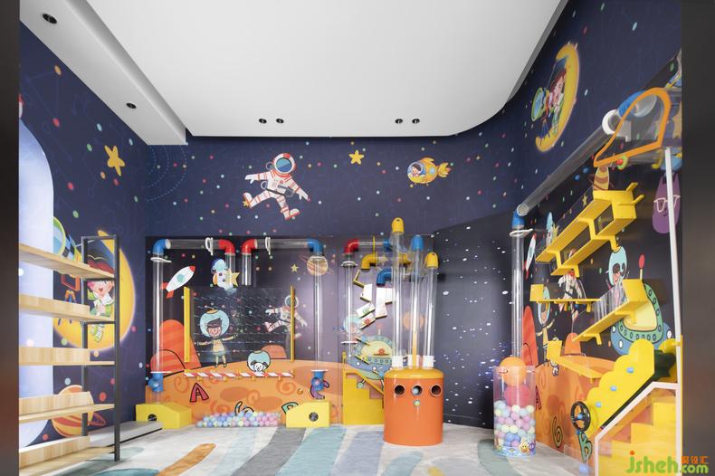 兒童區(qū)的打造極富想象力,色彩豐富的夢幻星空、自在遨游的小小宇航員、售樓處設(shè)計多樣別致的游樂設(shè)施,輕而易舉點燃孩子們與空間的情感互動,探索著這一方新奇世界。