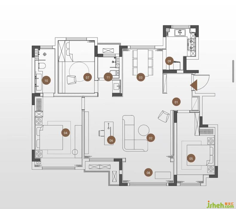 在東方古韻美學(xué)的藝術(shù)筆觸下,試圖探索更適應(yīng)當(dāng)下生活方式的空間情境,樣板間設(shè)計(jì)人與空間的關(guān)系由此得以自由的平衡共生。