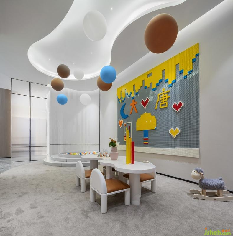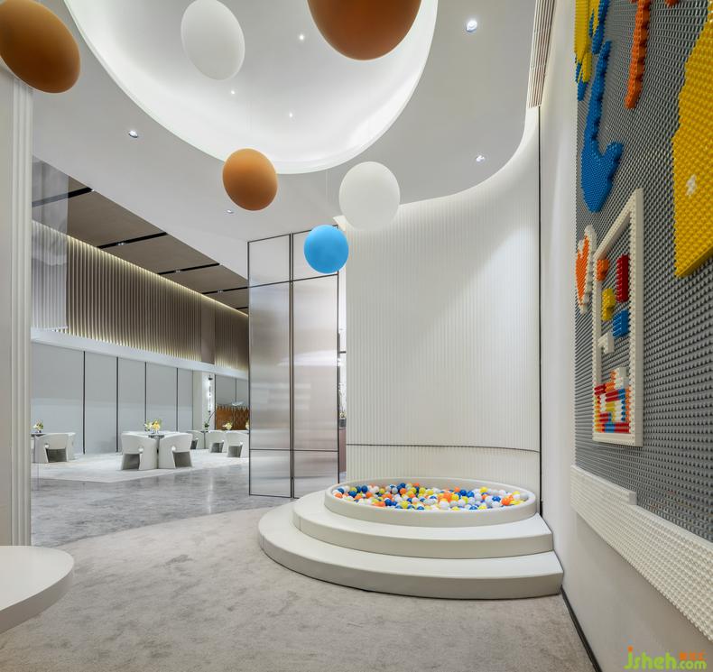 兒童區(qū)同樣為孩子們打造一片“大?!?,波波池增添售樓處的可玩性,待孩子們長大后,室內(nèi)設(shè)計(jì)師再去追逐屬于自己的星辰大海吧。
