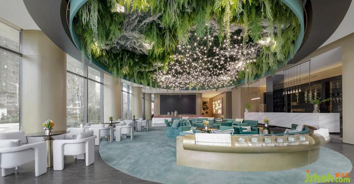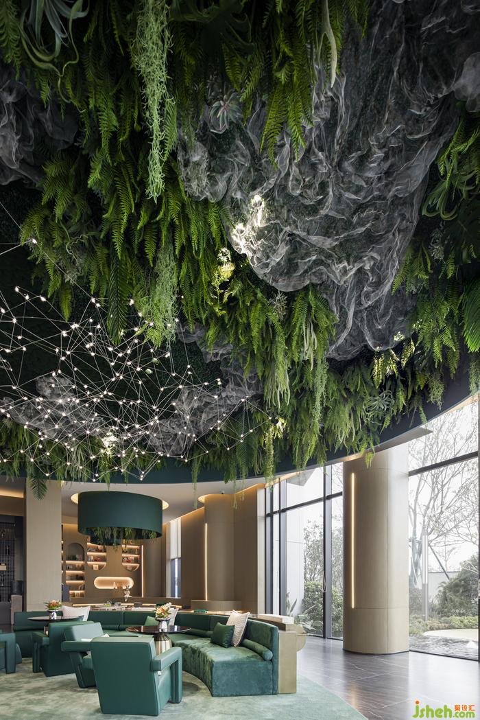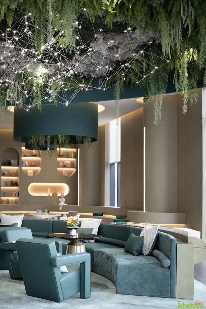 金色絲線交織的光影,串合顆顆輕盈微光,售樓處設(shè)計(jì)如陸棲流螢。散發(fā)出來的粒子氣息,似生態(tài)粒子飛舞和生命體的靈魂微粒:動(dòng)態(tài)而柔軟,在茂盛的詩庭蔓延出生物之美,讓每一位來訪者享受一場視覺盛宴。