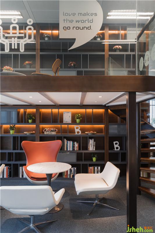 越是簡潔的空間,越是可以觸及到人的心靈深處。書吧作為非正式交流的最重要場所,最適合釋放高速運轉(zhuǎn)的思緒。員工可以用一杯咖啡的時間、用一個默契的眼神交換,來迅速調(diào)整狀態(tài)儲備戰(zhàn)斗值。設(shè)計師采用比較生活化的設(shè)計策略與理念,通過更加舒適、親和的背景,最大程度地優(yōu)化了用戶體驗。