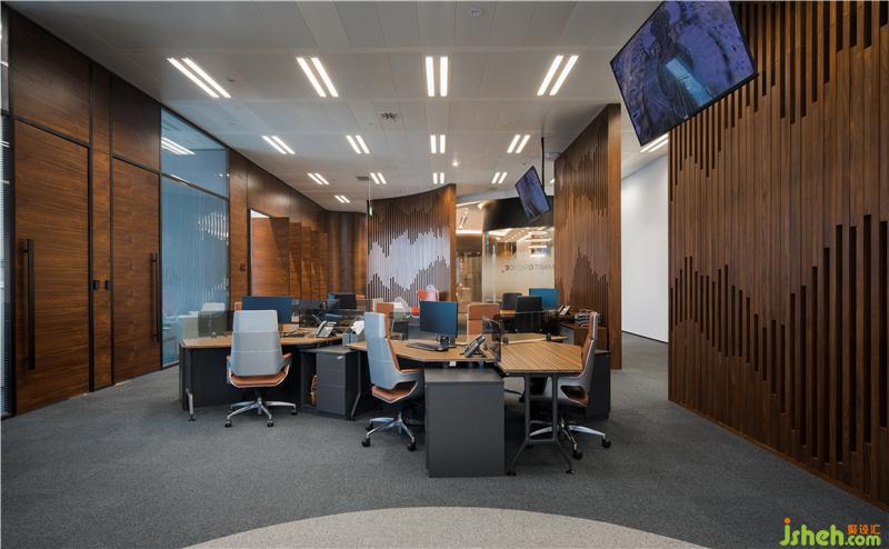 會議室延續(xù)了空間整體的風(fēng)格特色,木質(zhì)元素、大理石細(xì)節(jié)和經(jīng)典的簡約家具在現(xiàn)代情致的基礎(chǔ)上,增添了幾分干練和優(yōu)雅。朝向江邊的視野,在不干擾工作的情況下,提供了一種自然且非常舒適的體驗。點狀光源和視頻語音系統(tǒng)在有限的維度里動態(tài)布置,營造出現(xiàn)代、寬敞的交流空間,激發(fā)創(chuàng)造性工作。辦公室設(shè)計
