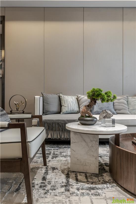 1、結(jié)構(gòu):硬裝空間采用簡(jiǎn)約的塊面感和果斷的直線條,體現(xiàn)山的剛性;軟裝采用布藝和弧形家具,體現(xiàn)湖水的柔軟;