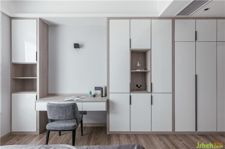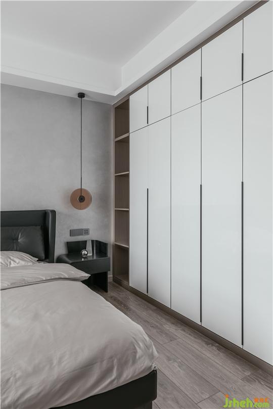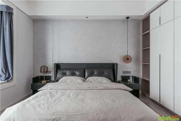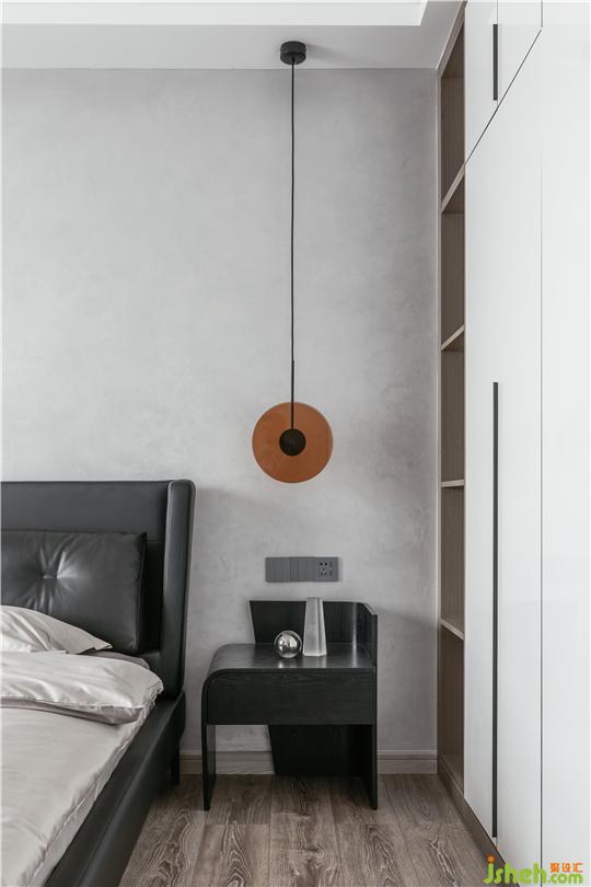 主臥暖灰色藝術(shù)漆做背景,讓整個(gè)空間溫潤(rùn)而有質(zhì)感,藝術(shù)氣息在整個(gè)空間暢游。