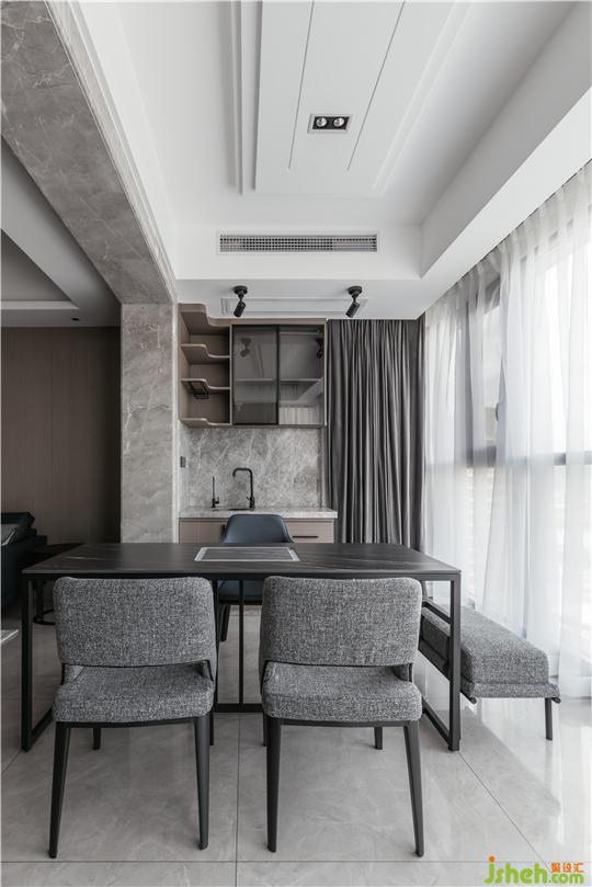 一邊吊燈一邊臺(tái)燈,通過(guò)色形的變化與揉合傳達(dá)出臥室的和諧溫馨。