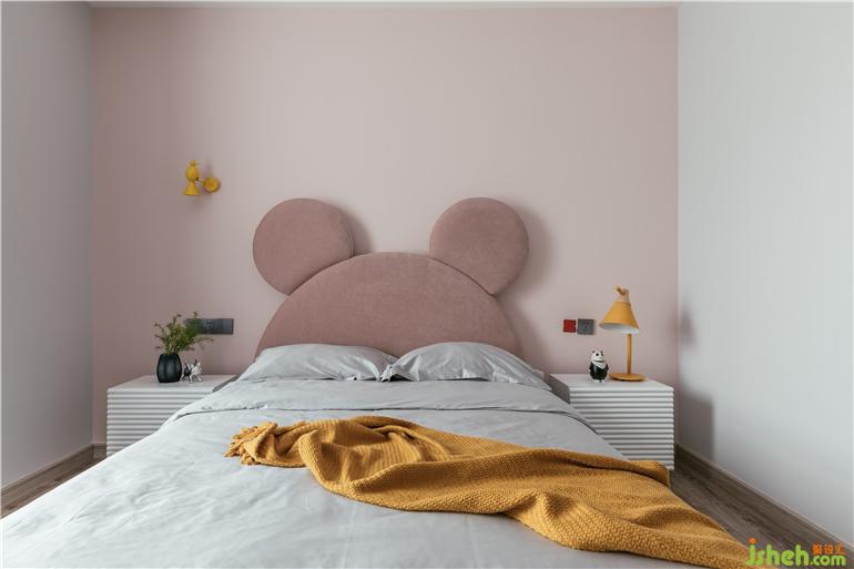滿足童話夢(mèng)的女孩房設(shè)計(jì),一張米奇床讓空間加了迪士尼濾鏡,同色系不同明度的背景和床的搭配,使整個(gè)空間的層次感更加豐富。