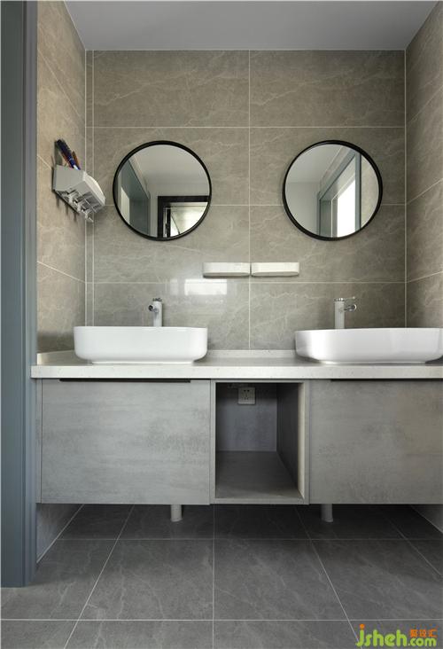 干區(qū)洗臉池做1.6米的了雙盆設(shè)計(jì),柜子懸空了20公分,這樣方便打掃下面的衛(wèi)生。早上老人和小朋友可以同時(shí)洗漱。選了水泥灰的門(mén)板,干凈利落。南京室內(nèi)設(shè)計(jì)師客戶(hù)比較喜歡臺(tái)上盆,臺(tái)上盆好看,可是時(shí)間長(zhǎng)了,和大理石之間的白色膠會(huì)發(fā)黑,需要重新打一遍。