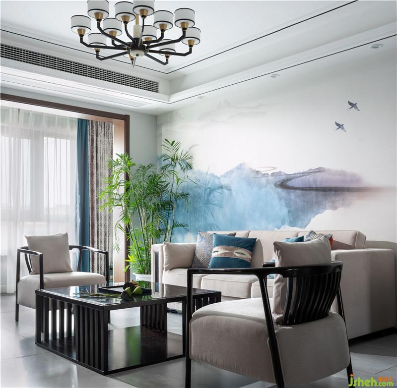 新中式的唯美之處在于一步一景,身處什么角度都能看見(jiàn)構(gòu)造搭配之美,水墨畫(huà)配上綠植,清新淡雅之風(fēng)飄逸而出。