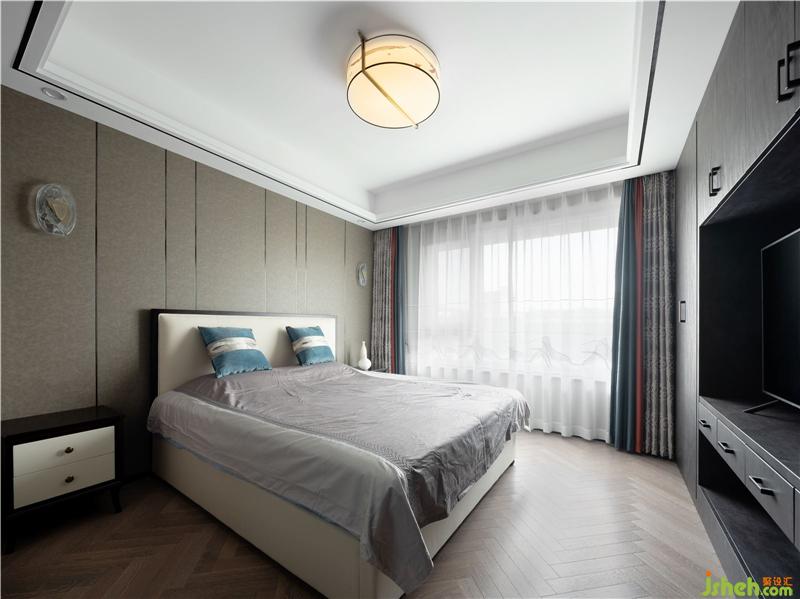 主臥有扇又大又亮的窗戶,采光非常好,所以選擇顏色深點(diǎn)的衣柜和灰色的墻面漆,中和亮度,讓整個(gè)空間柔和起來(lái),人更舒適。