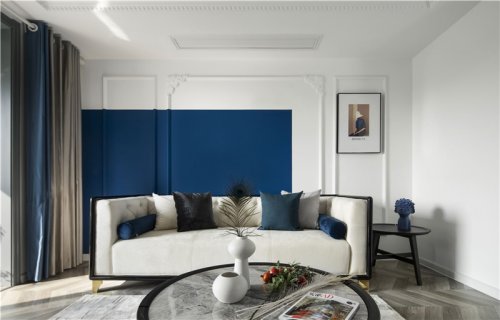 屋主喜歡中式,家里老人喜歡清心素雅,孩子喜歡藍(lán)色,經(jīng)過(guò)溝通還是新中式適合屋主一家,既有作為生意人中意的是沉穩(wěn),厚重的文化氣息。又有空間色調(diào)的跳躍。