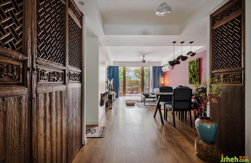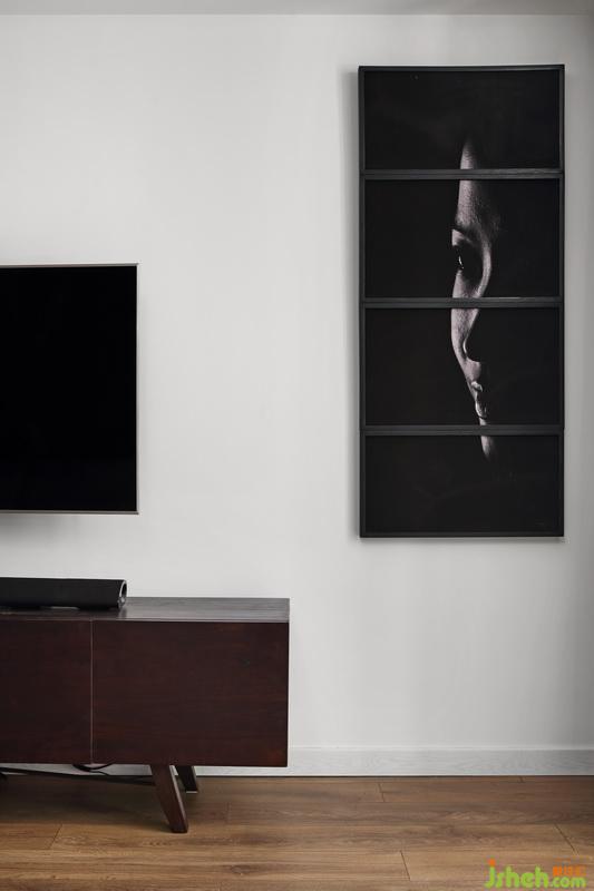 剩下的那一扇,出其不意安置在了對面,與餐邊柜渾然一體,又與這三扇門相呼應。