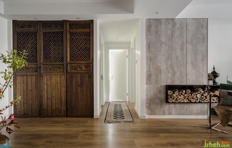 古董門裝在了儲物間的外圍,玄關的對面,用來安放鞋子和包包。