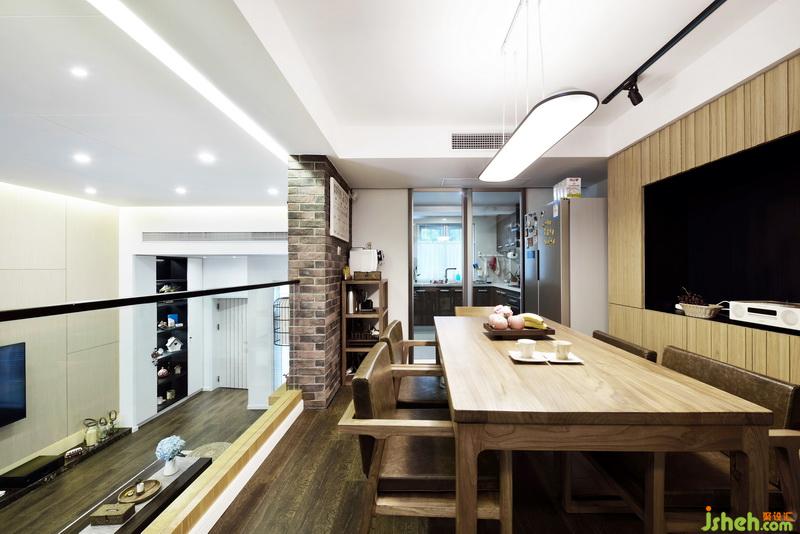 餐廳與廚房融為一體,簡單,干凈,原木色的餐桌椅,與整個(gè)空間是那么的和諧.
