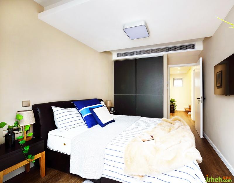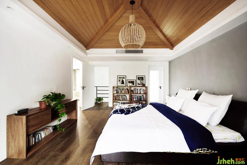 臥室的設(shè)計(jì)都由直線條勾勒,吊頂雖為斜坡,但也是由同為直線條的木紋裝飾所組成,自然的紋理豐富著空間線條,坡頂部分則活躍了層次感,配以極簡主義的家具,同時(shí)又給人帶來親切而舒適的感受。不過為了增加空間的整潔性并保持對(duì)稱,室內(nèi)設(shè)計(jì)師用了白色亮面的五斗柜而非床品套系里的純實(shí)木,白色小圓桌和黑色躺椅也很映襯這里清新、自然的氛圍。
