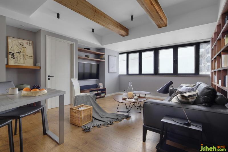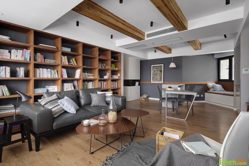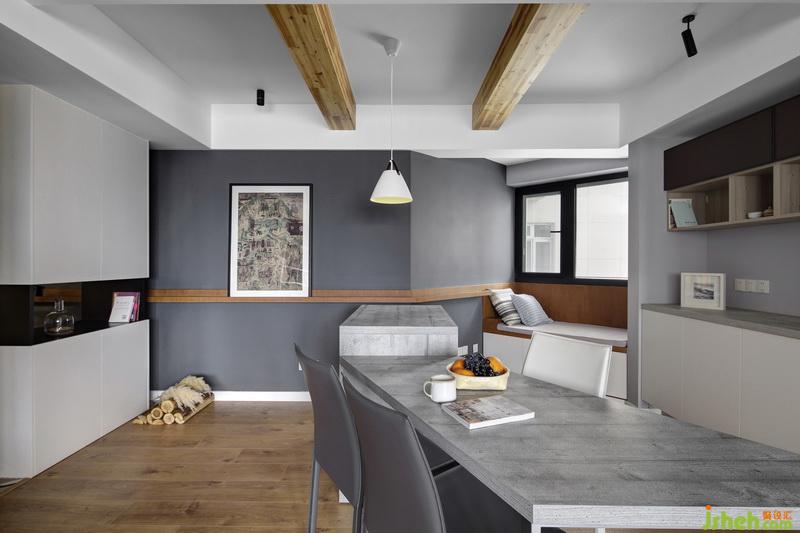 明亮的光線透過黑色的窗框影射進(jìn)來,讓氣氛帶著些許禪意。兩根原木吊頂貫穿整個(gè)客餐廳,有一種與生俱來的大氣莊重,棱角分明的線條感,表達(dá)著高貴的樸素,由此顯出質(zhì)感的堅(jiān)實(shí)與細(xì)膩,也把所有細(xì)碎的設(shè)計(jì)連接得更加整體??筒蛷d之間,灰色沙發(fā)與吧臺(tái)餐椅色調(diào)上的呼應(yīng),也使得整體更加契合,沒有艷麗的花束,沒有累贅的儀式,有的只是生活原本的樣子,和共享晚餐相談世事的樂趣。