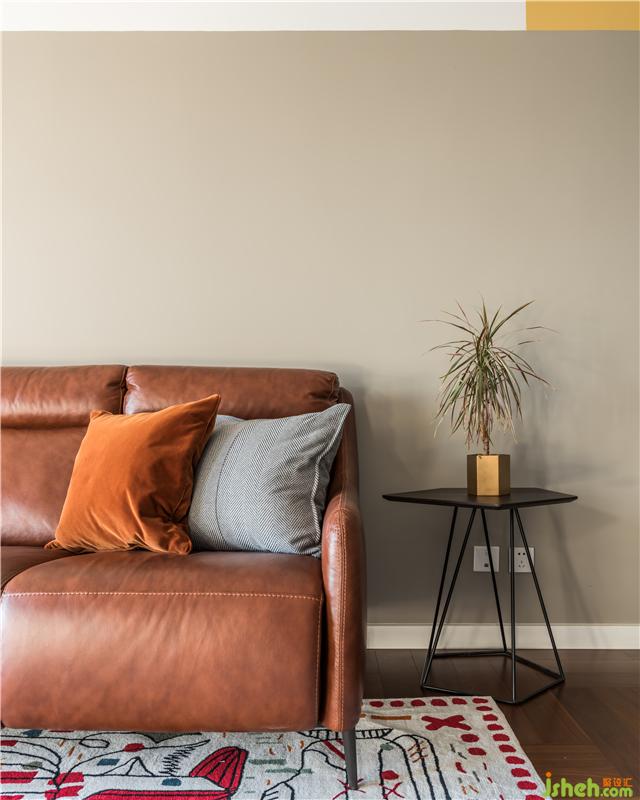 如何更好地提升空間的高級感和層次感,特別是小空間住宅?一個選擇就是大膽的運用出挑的色彩,跳出那些安全但略顯無味的顏色吧,干凈和諧的拼色墻會帶來吸引眼球的視覺美感,無論是拼色墻還是飽和度極高的地毯和沙發(fā),通過頂面和電視背景墻的白色墻面進行過渡,和有收有放才是色彩運用的聰明邏輯。