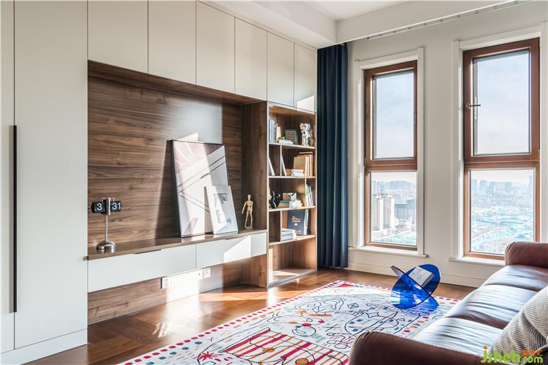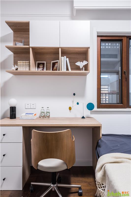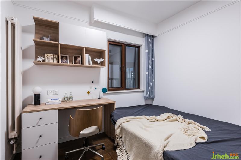 主臥和兒童房沒有眼花繚亂的背景墻設計,簡潔和有質感的墻面才是北歐風的詮釋,運用純色的乳膠漆結合無主燈,空間感被放大,滿足和基本的收納和睡眠的需求以外,主臥還設計了對床的一面大白墻供業(yè)主用投影儀,“臥室電影院”的設計增加幸福感。兒童房因為業(yè)主孩子還小,榻榻米和組合式書架桌椅,留給小業(yè)主幾年以后一個人住。