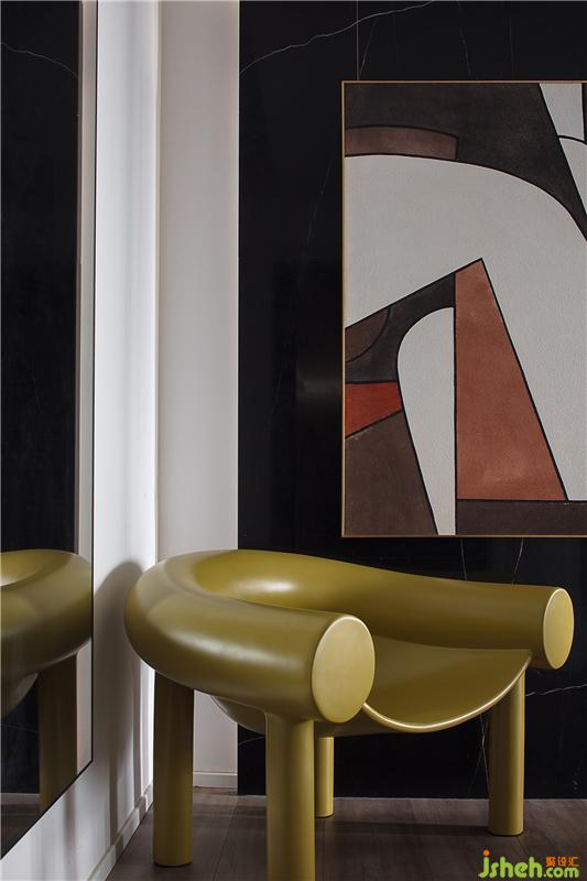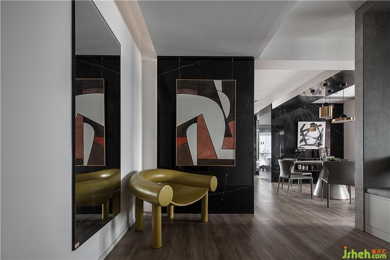 入戶自動(dòng)燈光設(shè)計(jì) 深色系的抽象畫和鏡面使空間顯得開闊
