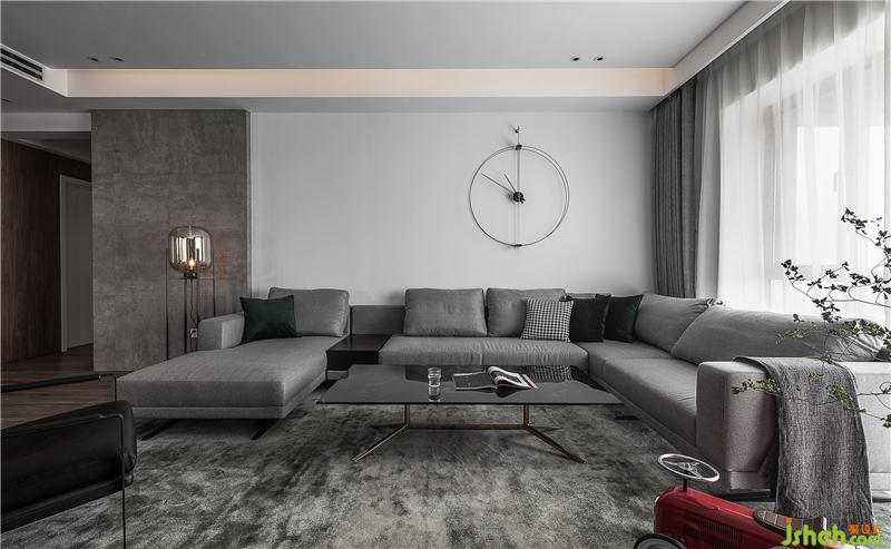 柔軟的地毯和灰色沙發(fā) 一抹紅是色彩焦點