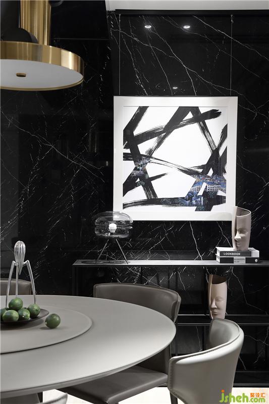 屋主一家是四口人,六坐餐桌對他們一家人日常使用已經(jīng)綽綽有余,在實(shí)用性上餐廳解決了觀影和餐吧的需求,儲(chǔ)物放在了電視下面的開放格,簡潔的材質(zhì)和色調(diào)來創(chuàng)造這里時(shí)尚,不失低調(diào)質(zhì)感的餐廚空間。