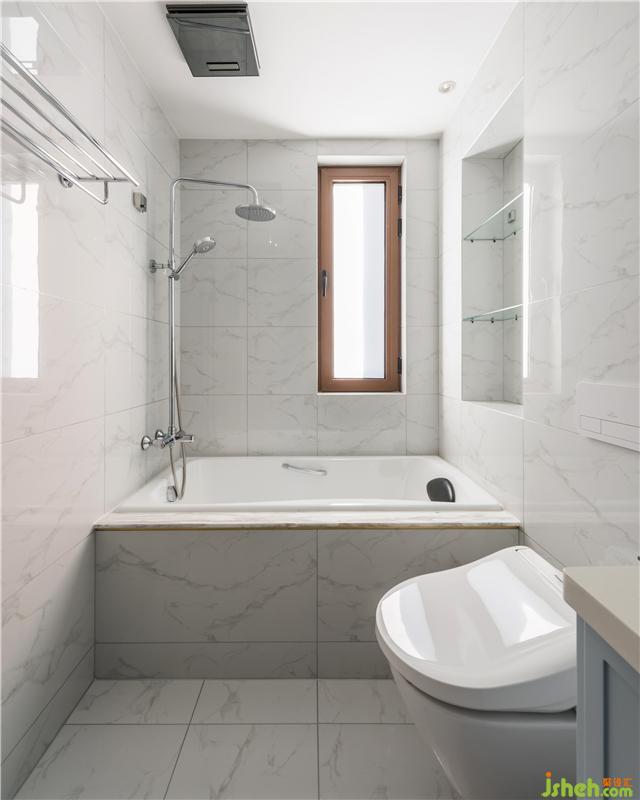 主臥洗手間不大 但是實(shí)現(xiàn)了浴缸和壁掛馬桶的雙設(shè)計(jì)
