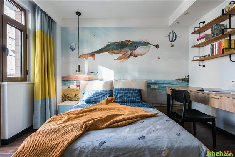 兒童房的墻面很吸睛 海面飛行的鯨魚