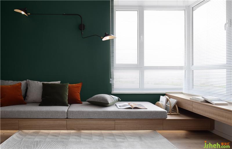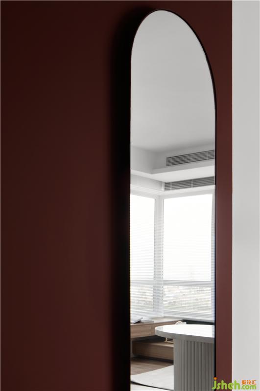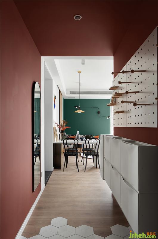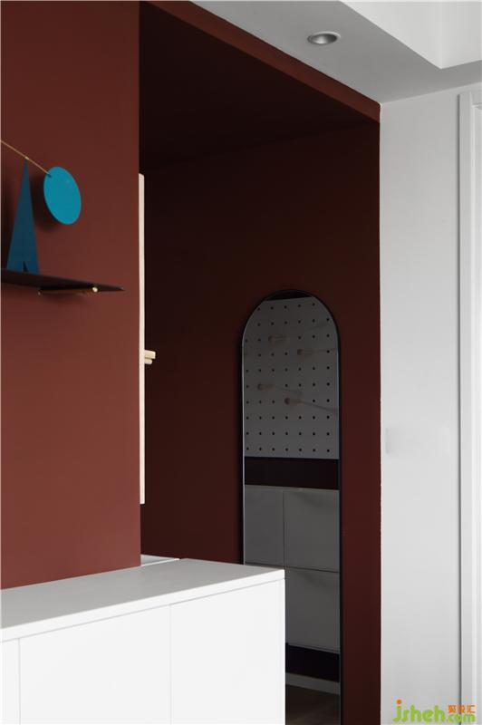 低飽和度紅為整個(gè)空間注入質(zhì)感的活力