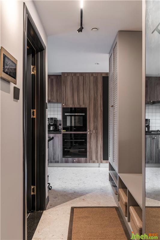 原始入戶是一條狹長(zhǎng)的通道,左邊是樓梯,右邊是洗手間,無(wú)玄關(guān)的情況下,視覺(jué)上和使用都非常局促,設(shè)計(jì)師將洗手間原始干區(qū)取消,改造成為一個(gè)雙面使用的玄關(guān)隔斷,正面衣柜-鞋柜-座凳三者結(jié)合,完全滿足進(jìn)門(mén)換鞋收衣服的需求,還有一面玄關(guān)鏡,整理儀容,非常好用。