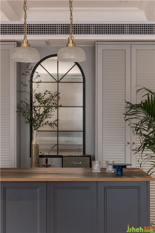 玄關(guān)柜背面也是正常使用的收納柜,天津別墅設(shè)計(jì)柜體表面用烤漆做了折頁(yè)式的紋理,造型別致。同時(shí)結(jié)合長(zhǎng)虹玻璃造型的窗戶,空間顯得通通,多種材質(zhì)搭配,從視覺(jué)上帶來(lái)了通透、流通的光影感,空間被放大。