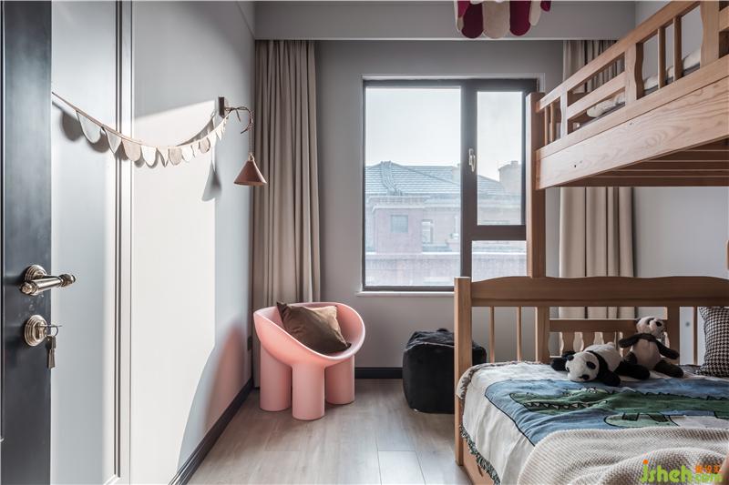 這個房間是給家里的小女孩,小熊貓的房間,床是她以前的床,在新的房間里也絲毫不違和,在設(shè)計之初業(yè)主就有和我們溝通,以前的舊家具如果可能的話希望能夠融合在新的家里。有些物品,經(jīng)過了時間的流逝,更多的也承載了使用者的記憶,變成了一個很重要的紀念品。
