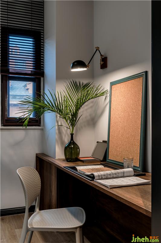 因為男業(yè)主工作的關(guān)系,我們還在二樓也同樣設(shè)計了一間書房,天津別墅設(shè)計面積十分有限但還是放下了一張長桌和移動書架,甚至還有一架跑步機。小書房的訣竅大概是先裝滿,越用越大吧~