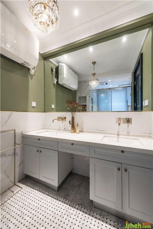 二樓的洗手間同樣實現(xiàn)了干濕分離,雙人洗手盆和浴缸的使用,都是保證生活舒適感的小細節(jié)。收納空間也必須要大,雙面六格壁龕加浴室柜,讓這里出現(xiàn)的物品都可以收納有序。