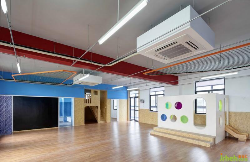 幼兒園是孩子的第二個家,故設(shè)計師將園舍選用柔軟的色彩、適齡的布置,減少幼兒入園的焦慮、給孩子們以安全、溫馨的滿足感。賦有藝術(shù)的環(huán)境創(chuàng)設(shè),能夠培育孩童賞識美、感觸美、和發(fā)明美的才能,并能熏陶孩童的情趣。設(shè)計師在整體設(shè)計上別具匠心,利用不用顏色和造型來劃分區(qū)域,增強孩子們的辨識度以及興趣。室內(nèi)設(shè)計師