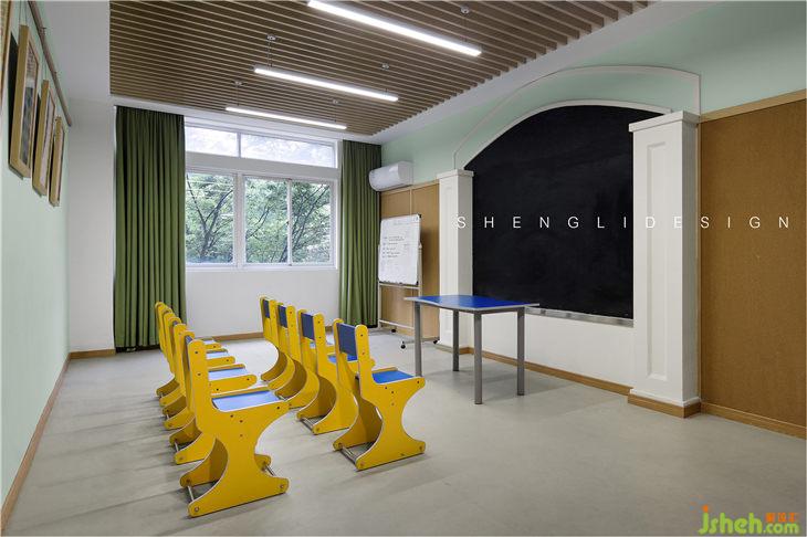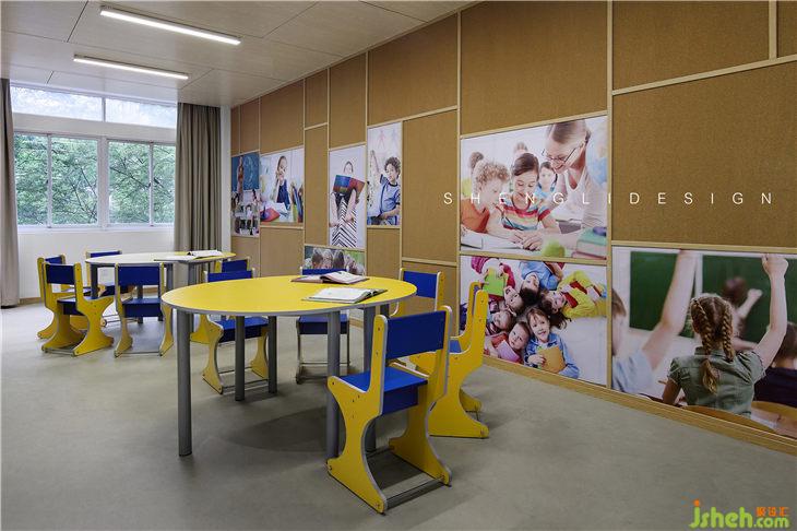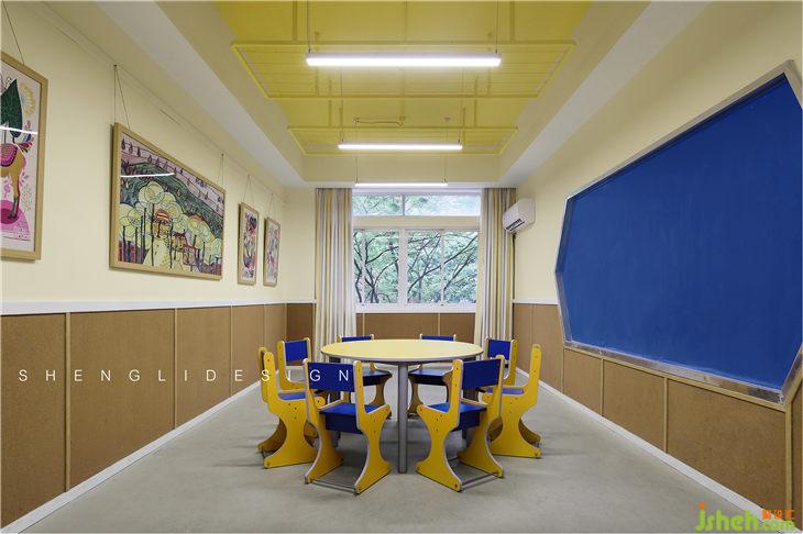 學(xué)校是安全的、可靠的、舒適的、溫馨的家,設(shè)計師摒棄了高大上的設(shè)計思路,實用、樸素、親切、溫馨是它的設(shè)計主題,布置的物品也都是方便更換或者移動的。