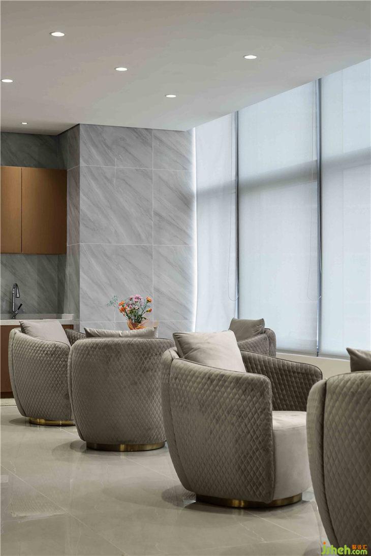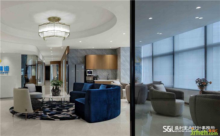 大廳的弧形沙發(fā),圓形吊頂以及頂面的戶型曲線,令用戶在進(jìn)入辦公室的瞬間便能感到一種溫暖友好的氛圍。